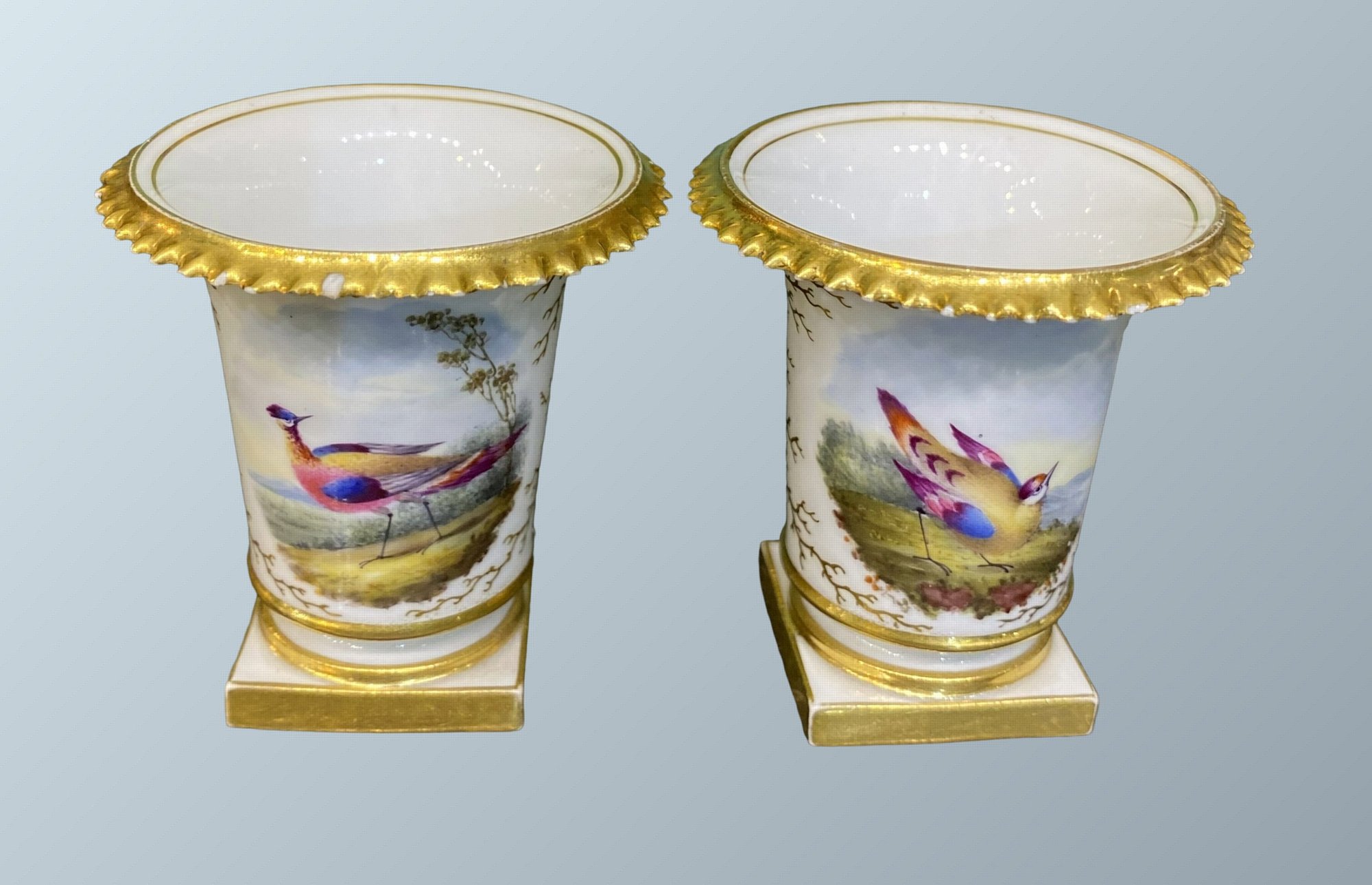 A FINE PAIR OF FLIGHT BARR AND BARR WORCESTER PORCELAIN MINIATURE VASES CIRCA 1815.
