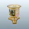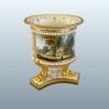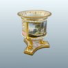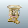 A FINE FLIGHT BARR & BARR WORCESTER PORCELAIN MINIATURE VASE, CIRCA 1815. This finely modelled miniature vase is raised on three richly gilded lion’s paw feet set upon a marbled and gilt triform base. The body is encircled by beaded white “pearl” bands and finished in a vibrant pink ground, reserved with delicately executed gilt neoclassical ornament. The inner rim is enriched with a continuous trailing gilt harebell band. The principal reserve is painted in full colour with a named view of Binstead Cottage, Isle of Wight, a subject in keeping with the early 19th-century fashion for British topographical scenes inspired by the Picturesque movement. Miniature vases of this type were intended as cabinet pieces, combining technical refinement with decorative elegance on an intimate scale. The underside retains full maker’s marks for Flight, Barr & Barr, confirming its manufacture & Royal patronage during this celebrated period of Worcester production. Height: 3.5in.