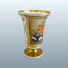 Of beaker or trumpet shape, raised on a spreading round foot, embossed with three bands of beaded white pearls, decorated in the vibrant pattern 3236 with panels of brightly painted shells and coral, reserved on a solid gilt ground. The reverse decorated in gilt with formal neoclassical grotesque motifs. Marked under with pattern number