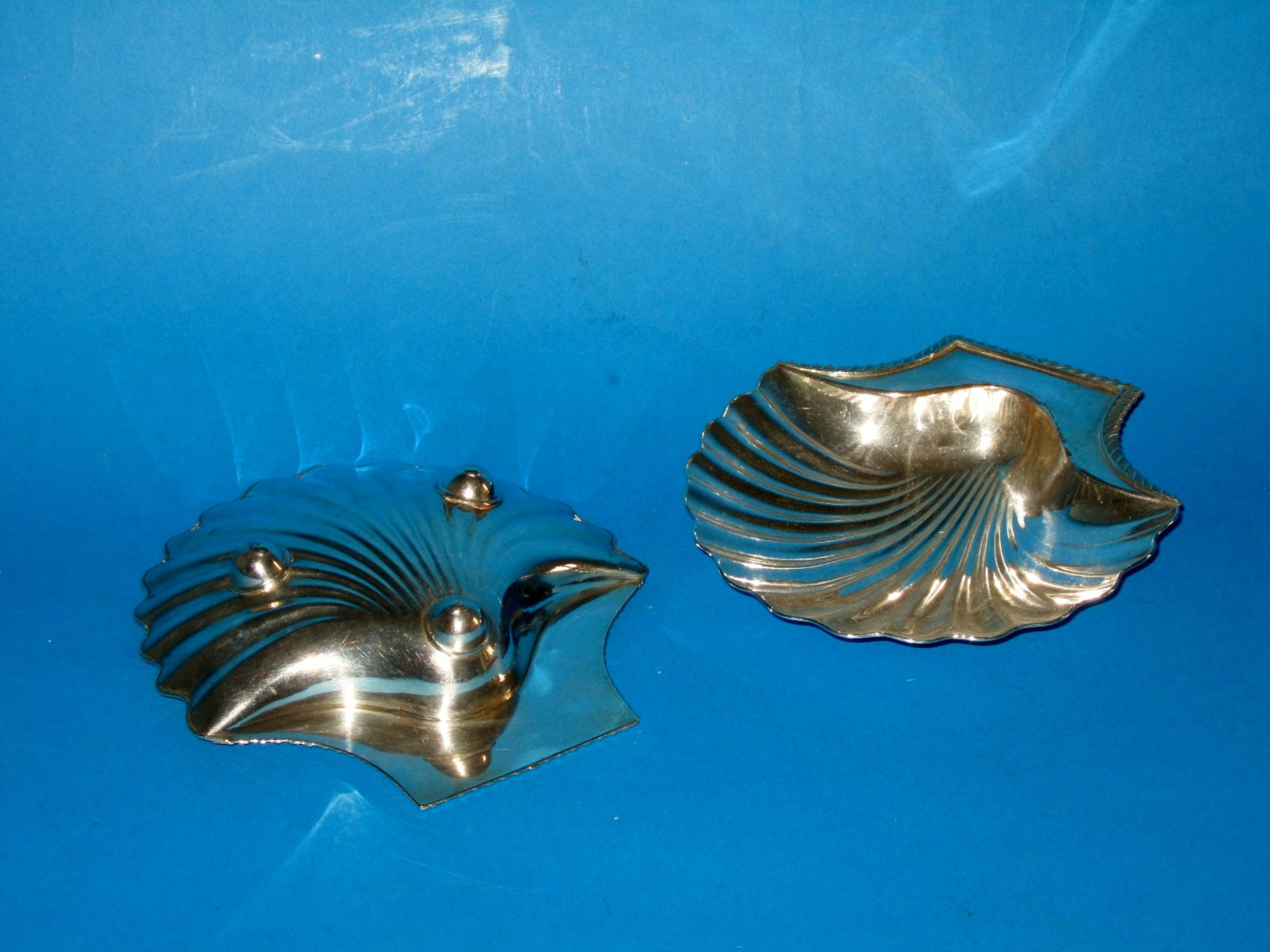 Description: A good pair of Regency period Old Sheffield Plate silver butter shell, circa 1815. Scallop shell shaped with gadrooned borders and raised on three bun feet. Makers mark: Creswick.