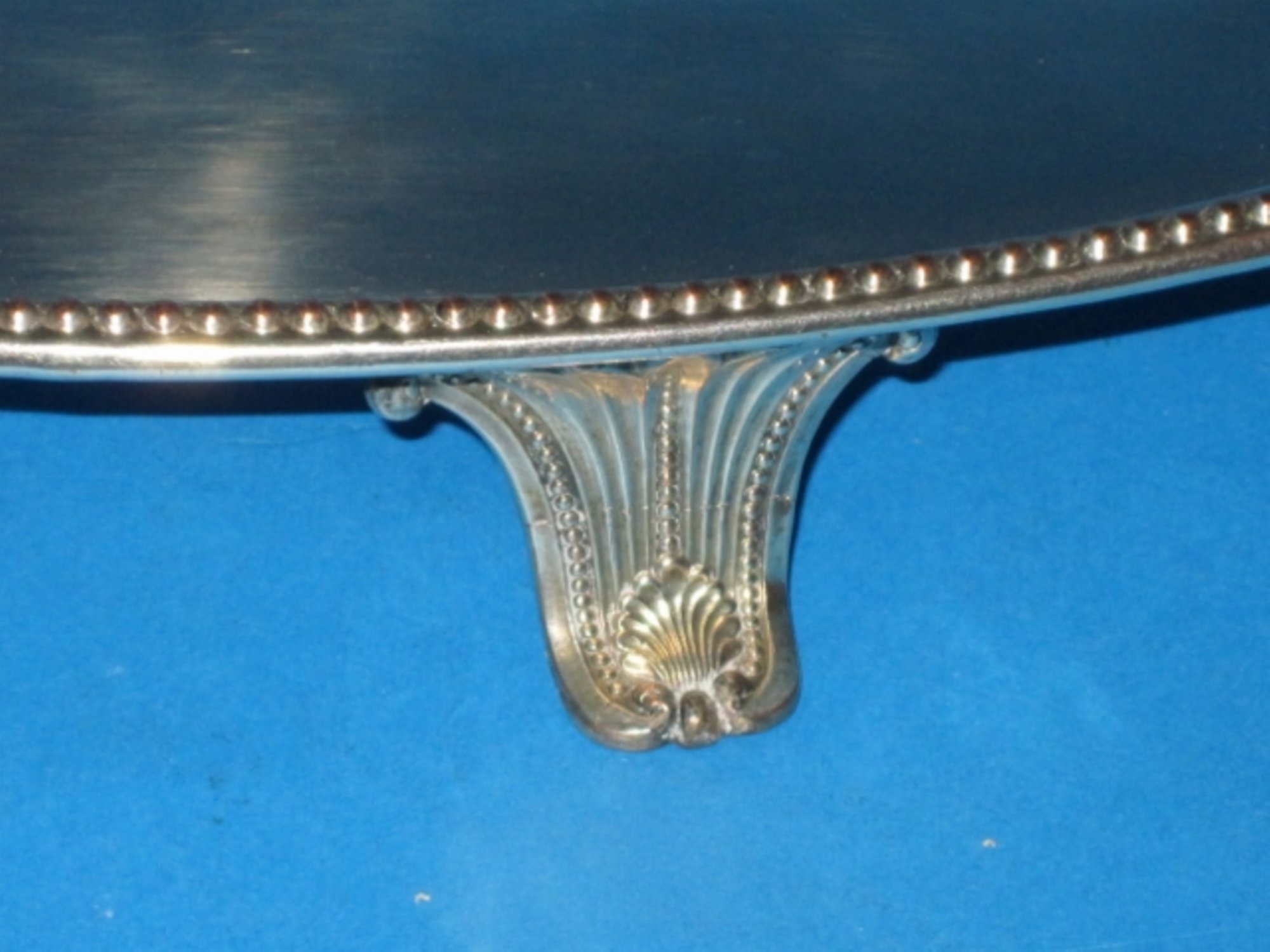 AN OLD SHEFFIELD PLATE SILVER OVAL SALVER. GEORGE III, CIRCA 1785.