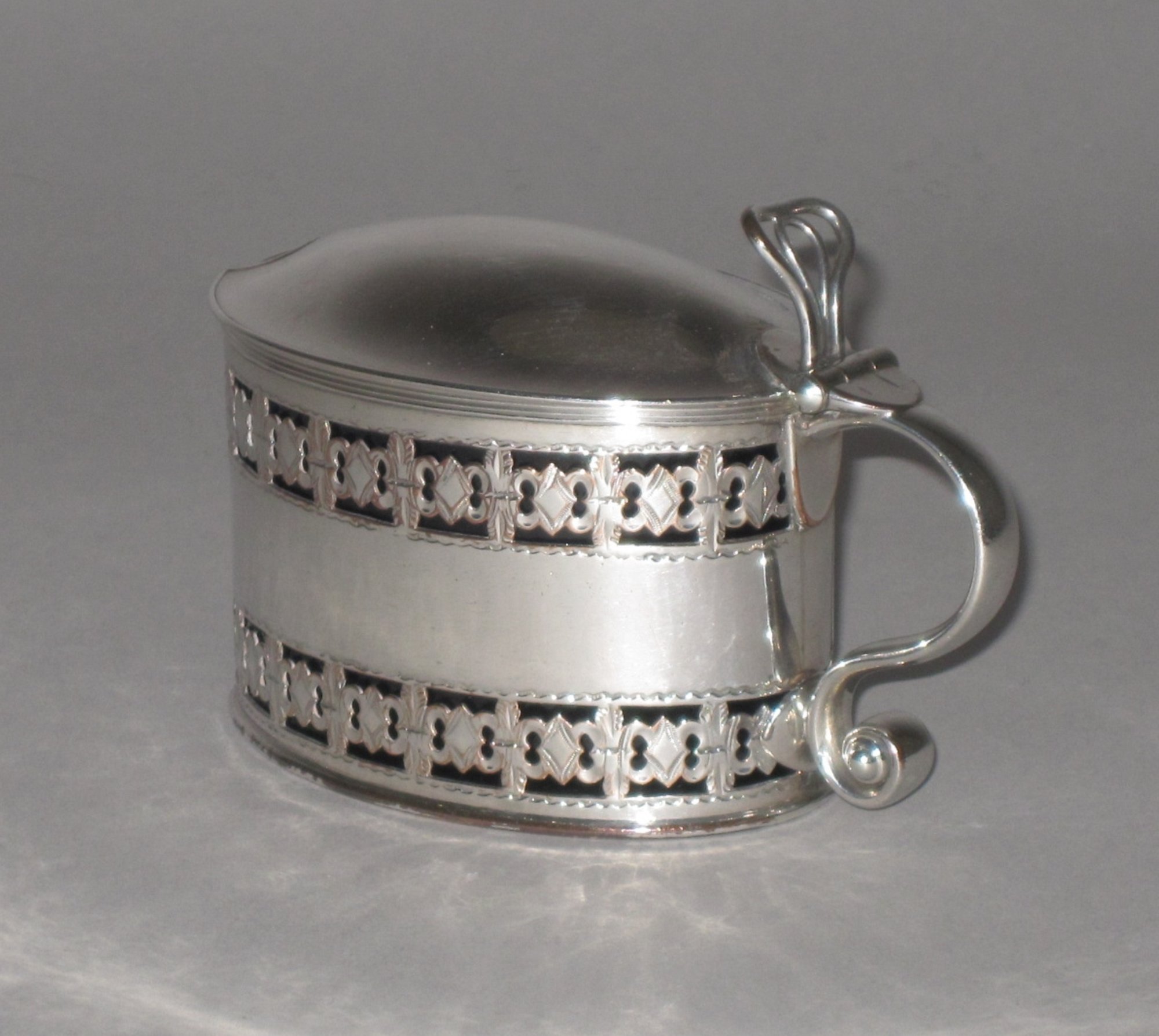 AN OLD SHEFFIELD PLATE SILVER MUSTARD POT BY ROBERTS, CADMAN & CO.. CIRCA 1790.