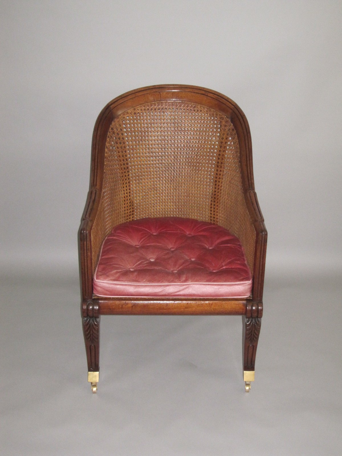 A GOOD REGENCY PERIOD MAHOGANY BERGERE LIBRARY CHAIR. GEORGE IV, CIRCA 1825.