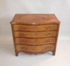 Crossbanded throughout with rosewood. the serpentine top with a central oval panel with corner radials of satinwood & greenheart. Over the base with serpentine front and shaped sides with cut corners, inlaid with greenheart and box line stringing, and with four graduated drawers above a shaped apron. Retaining original brass swanneck handles and side carrying handles. The top drawer is fitted with a brushing slide and an arrangement of various lidded compartments & drawers. Excellent quality throughout.