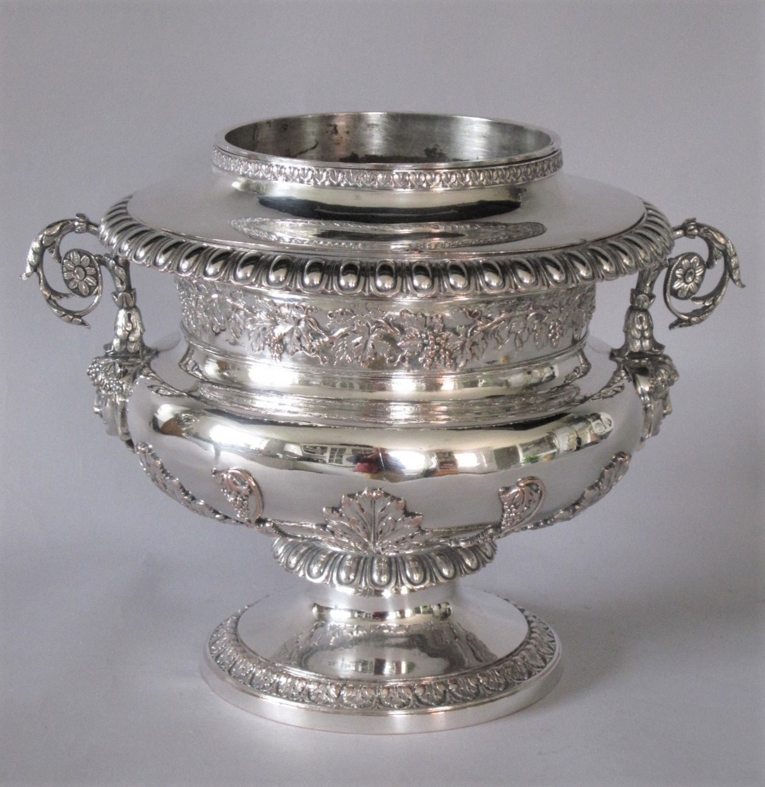 A SUPERB QUALITY OLD SHEFFIELD PLATE SILVER WINE COOLER, GEORGE IV, CIRCA 1825.