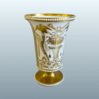 Of beaker or trumpet shape, raised on a spreading round foot, embossed with three bands of beaded white pearls, decorated in the vibrant pattern 3236 with panels of brightly painted shells and coral, reserved on a solid gilt ground. The reverse decorated in gilt with formal neoclassical grotesque motifs. Marked under with pattern number